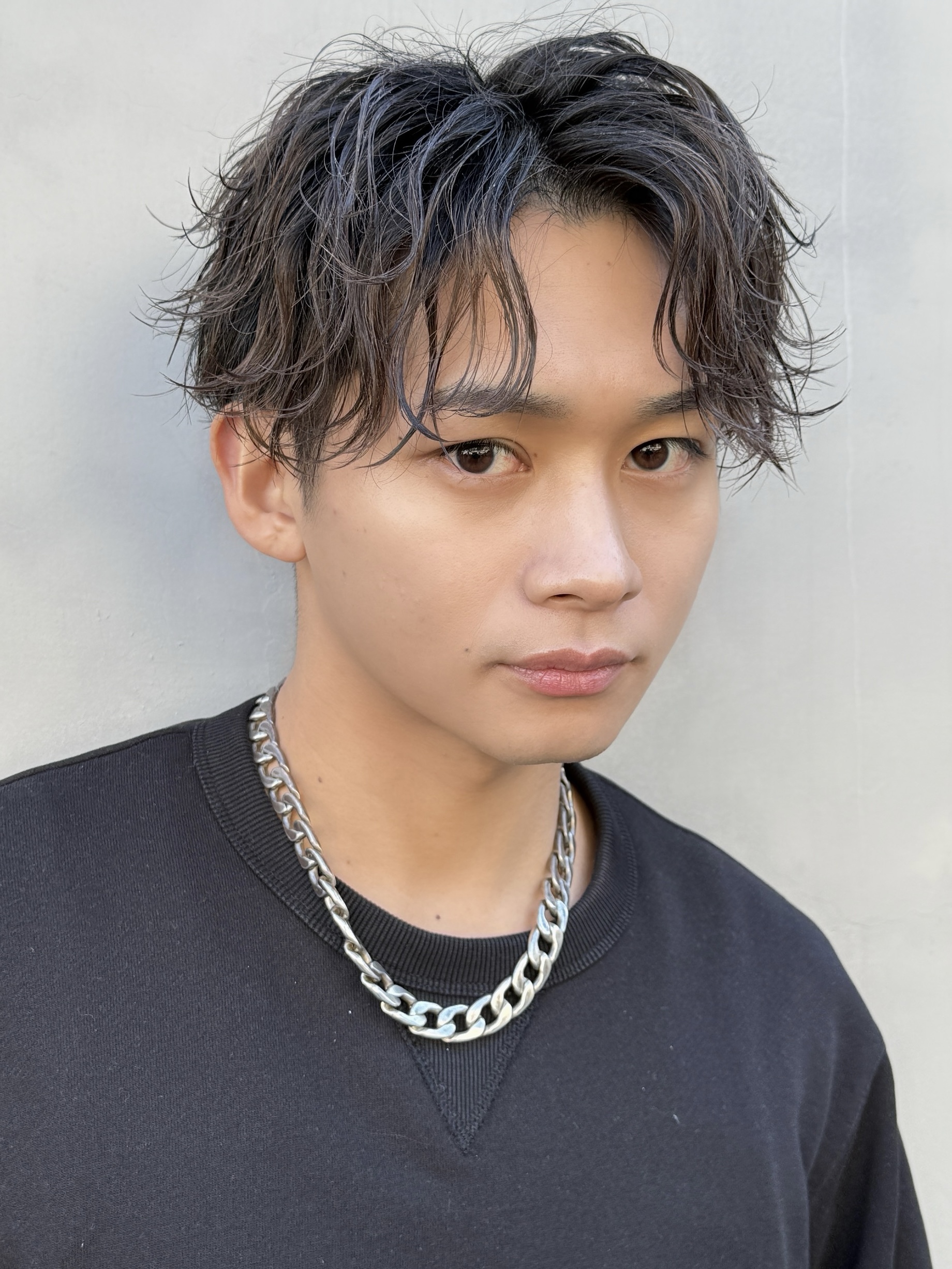 それでも難しい場合は、波巻きパーマで自然な動きをプラス。緩めパーマでボリュームを抑えながら立体感を作り、センターパートでも扱いやすいメンズパーマに。ダメージにも配慮しながら施術します。気になる方はご相談ください。